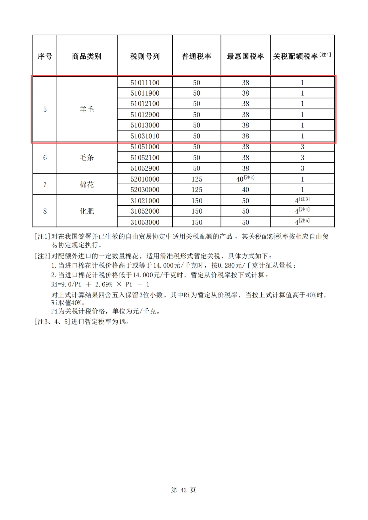 备注:对在我国签署并已生效的自由贸易协定中适用关税配额的产品 ,其关税配额税率按相应自由贸易协定规定执行。