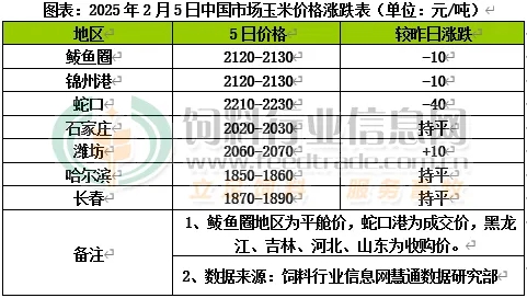4、俄罗斯农业部发布通告,2025年2月4日到2月11日期间,玉米基准价格为每吨234.0美元,出口关税为4255.3卢布/吨;之前一周基准价格为234.6美元,出口关税为4659.1卢布/吨。