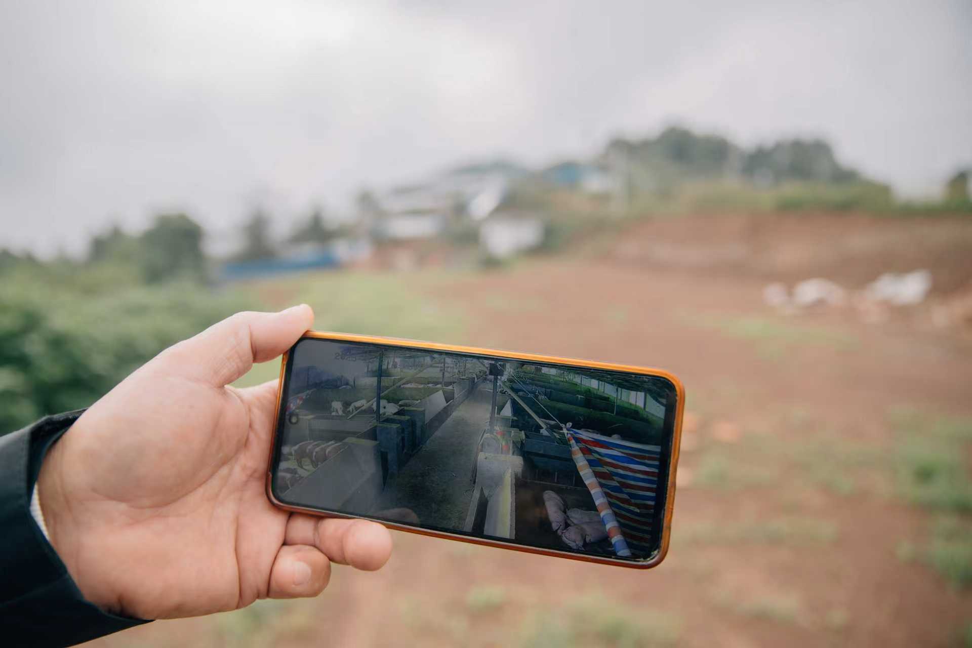 养殖户李先勇通过手机实时观察圈舍情况每经记者张建摄