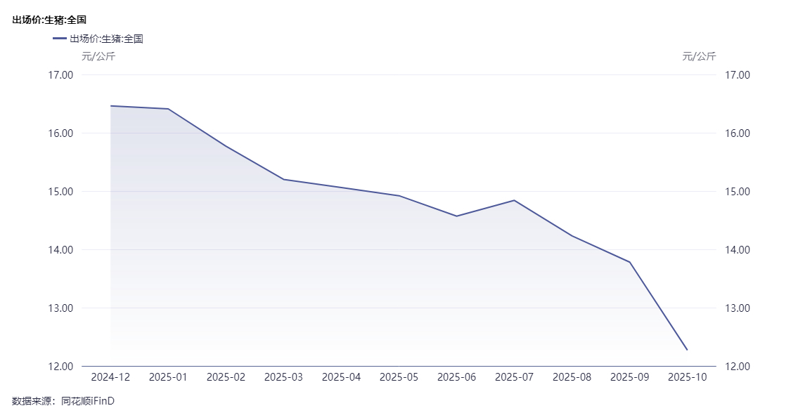 近一年来全国生猪出场价格走势(单位:元/公斤)