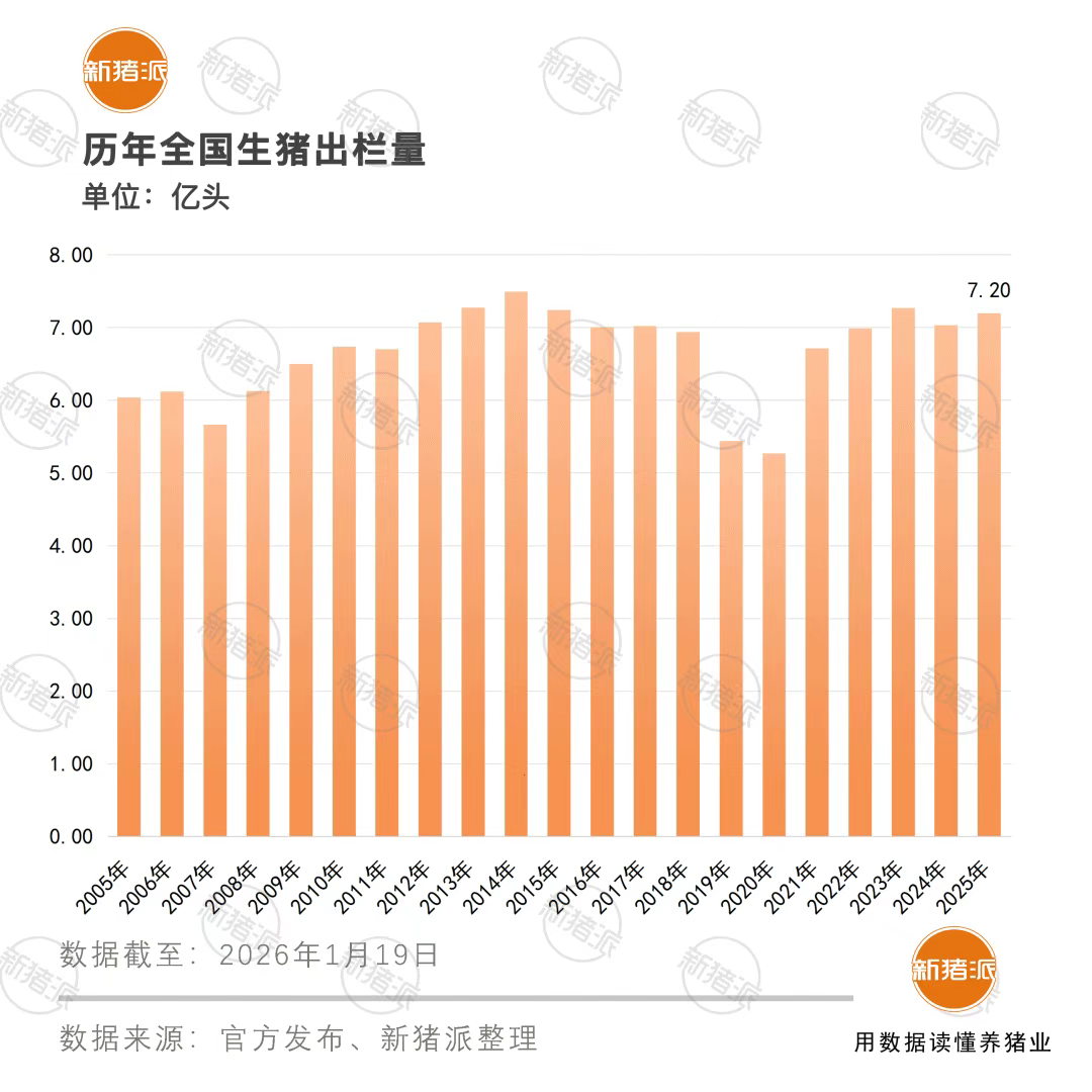 2025年生猪出栏7.2亿头,同比上涨2.38%