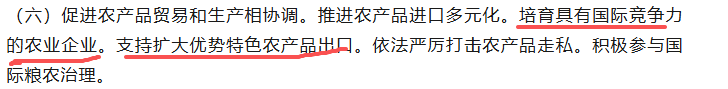 文件中提到的“培育具有国际竞争力的农业企业”这是国家站在全球农业竞争与粮食安全格局下,对产业龙头提出的更高维期待。期待国内出现能够以技术创新为核心驱动、代表中国参与全球产业链分工与价值争夺的领军者。