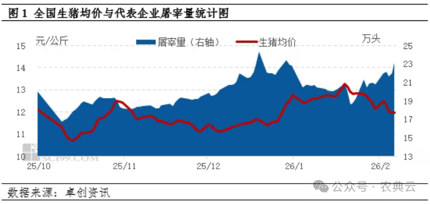 供应方面,卓创资讯监测全国196家规模养殖企业1月份生猪出栏量环比减少4.09%,因2025年12月养殖端出栏节奏正常偏快,部分地区有降体重出栏现象,导致2026年1月份可出栏适重猪源减少;另一方面,大体重生猪价格优势较为明显,且屠宰企业对大体重生猪采购需求较高,1月份养殖端有压栏增重现象,生猪供应减少。