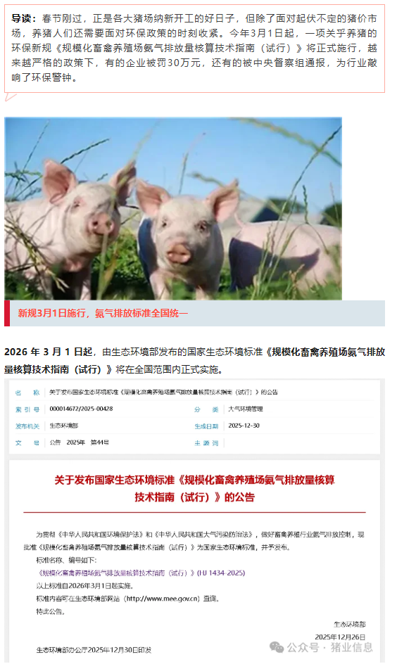 注意!3月1日起,养猪环保新规落地,有养殖场被罚30万,还有企业被中央督察组通报!
