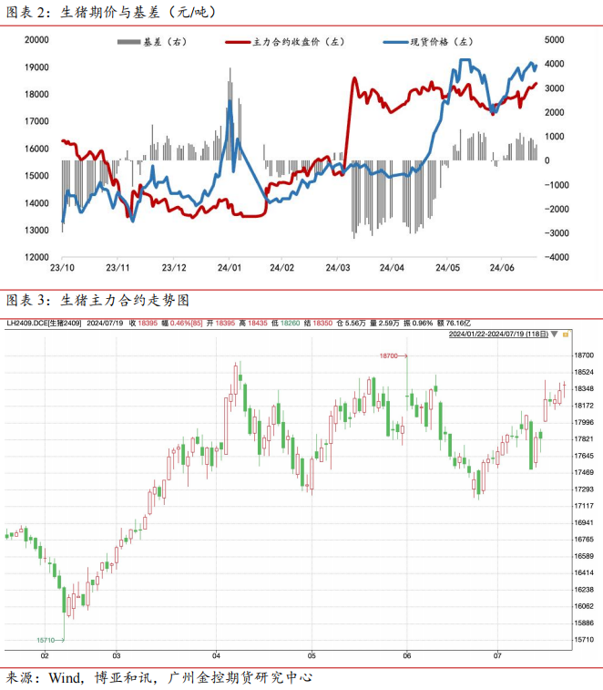 7月19日当周现货猪价高位震荡;期货市场价格跟随现货价格震荡,整体呈现近强远弱的格局。