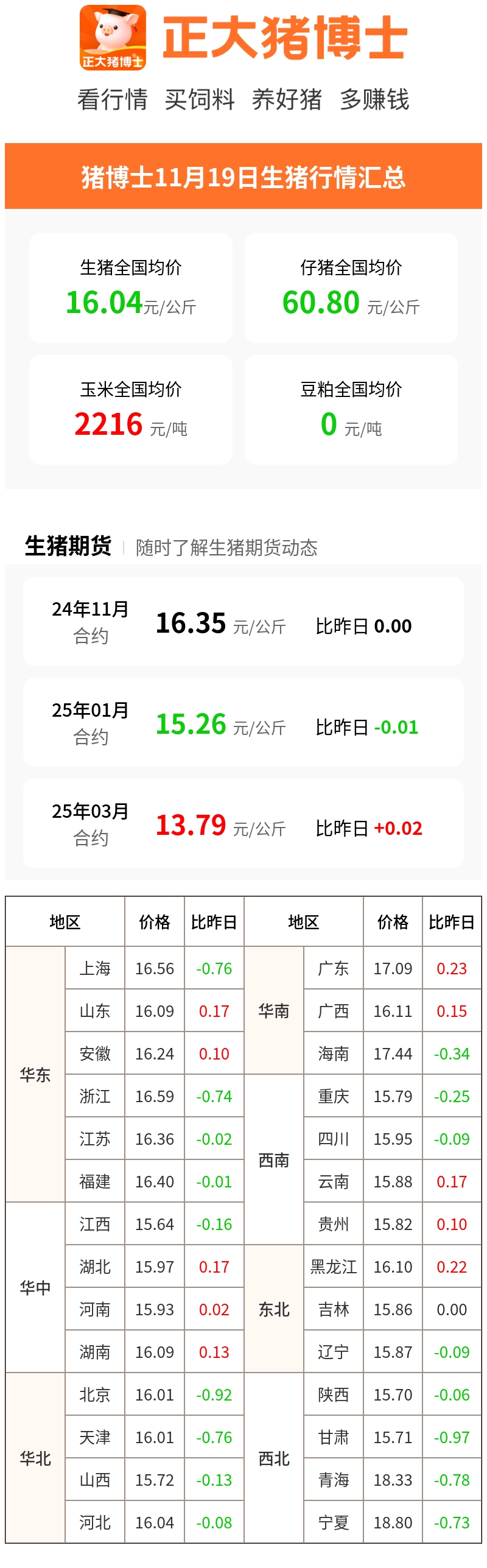 11月19日生猪行情汇总(元/公斤)