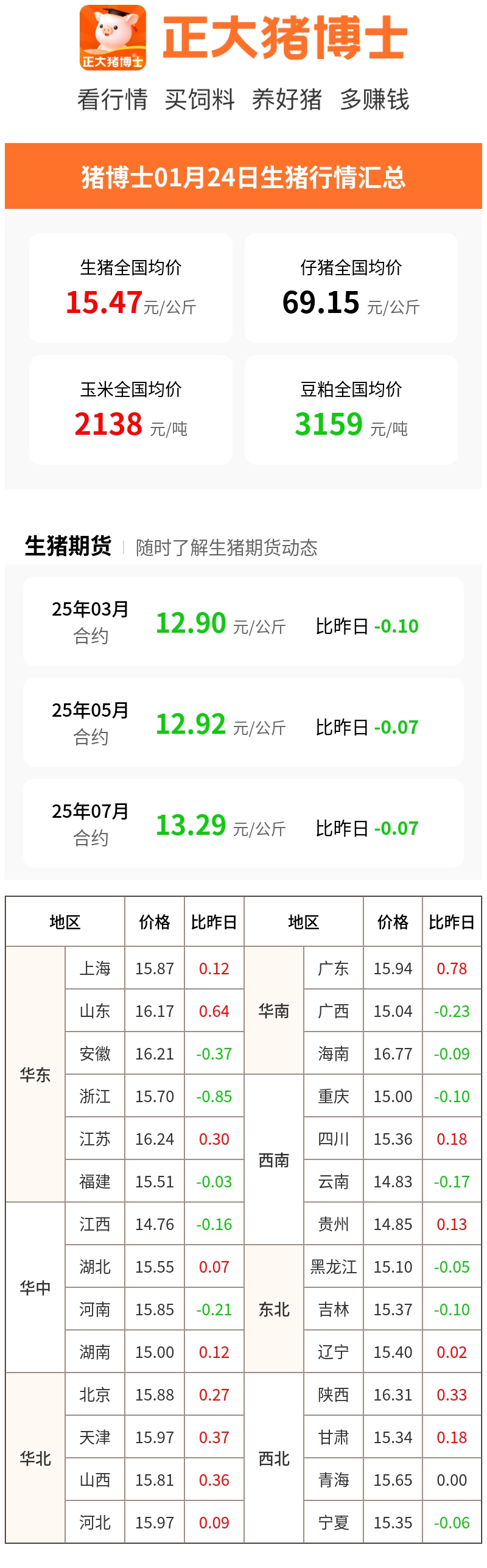 01月24日生猪行情汇总(元/公斤)