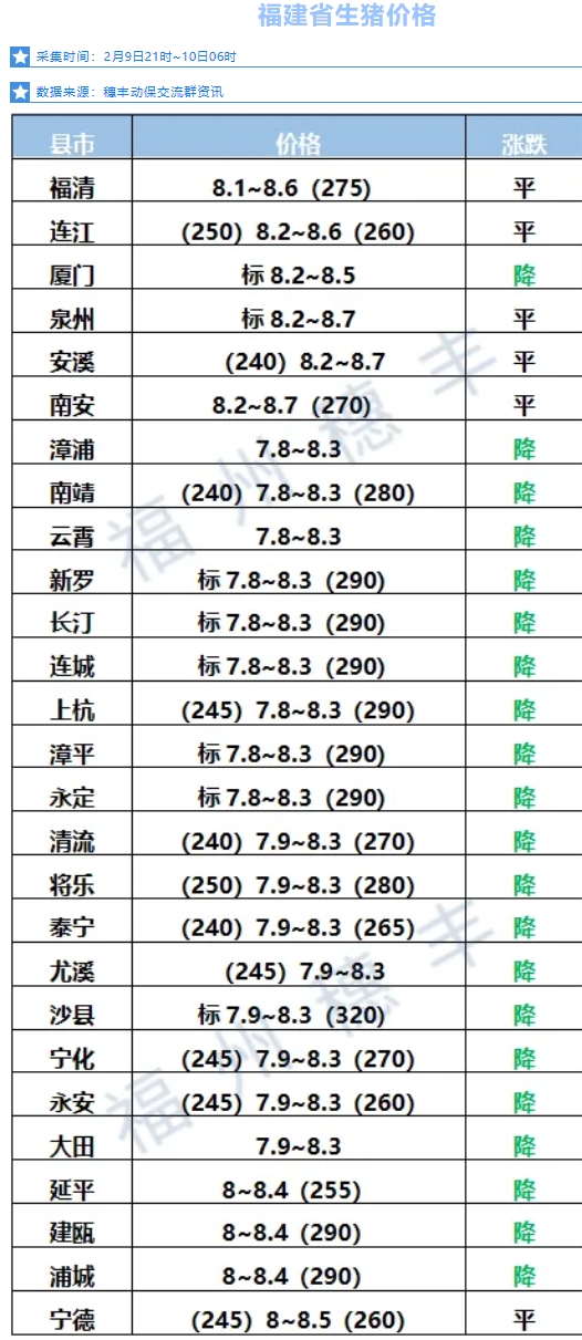 2025.2.10福建猪价快讯