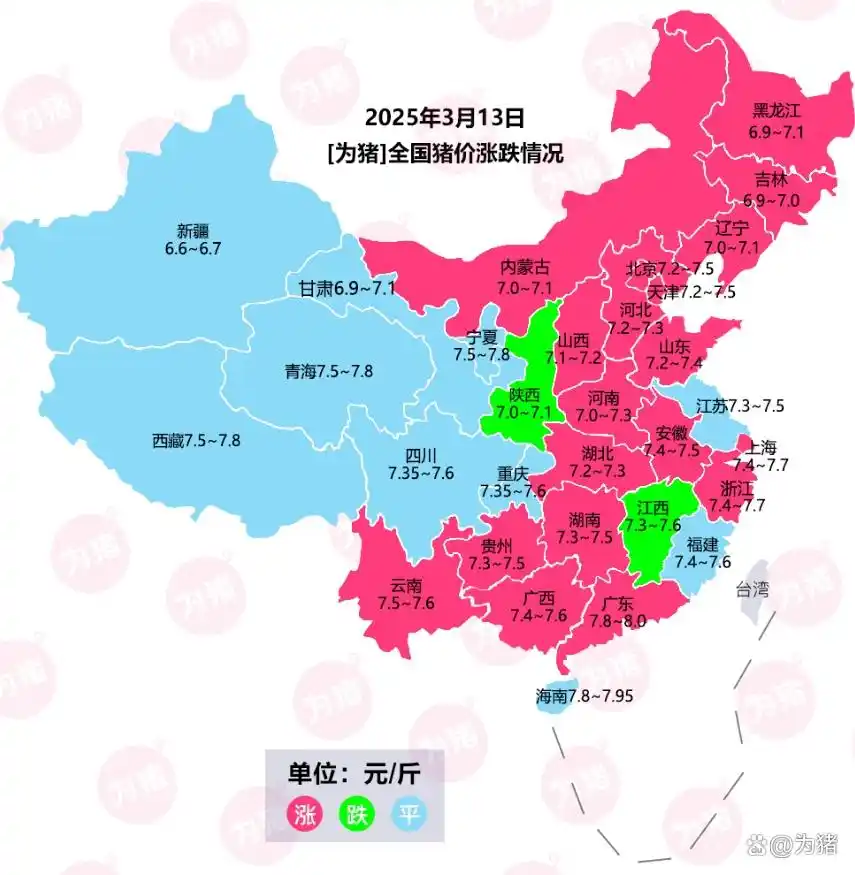 大场拉涨情绪打得高,今天表现不及预期,东北地区上涨较为明显,标猪主流报价在6块9到7块1,标猪再次上7元。今日河南一哥出栏价格稳定偏弱,广东地区上涨2毛,标猪再次上8。散户涨2毛,近期天气转暖,求购仔猪现象增多,仔猪成交价格上涨20元左右。屠企继续亏损,部分有分割入库现象。关注我带你了解最新的猪价信息。