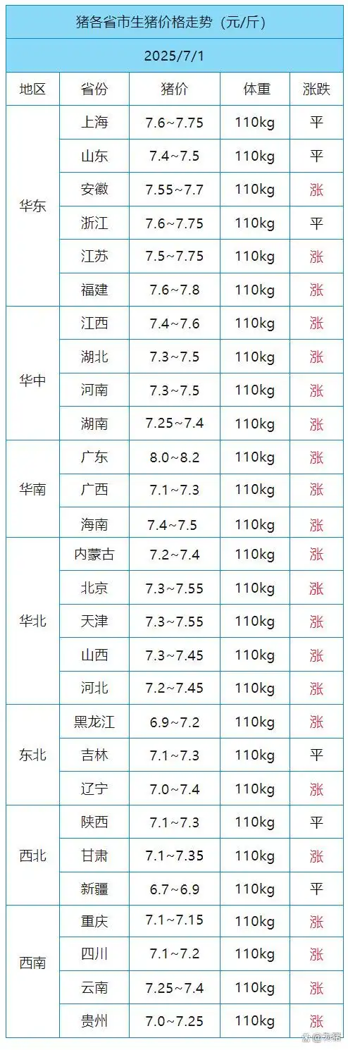 南北大场缩量拉涨,今日上涨较为坚挺,东北地区标猪主流报价在7块1到7块4,散户价格依旧稳定,今日河南一哥出栏价格上涨1毛,均价在7块65,广东地区上涨2毛,均价涨至8块3,散户报价稳中偏强,局地上涨1-2毛,市场情绪继续看涨,目前终端市场依旧乏力,预计7月份猪价将好于6月份,关注我,带你了解最新的猪价行情。