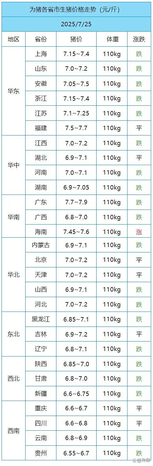 重要信号!开完会第二天南北大场开始增量降重,猪价继续向下调整,今日河南大场出栏价格下调2毛,均价7块1左右,广东地区下调2毛,挂牌价格7块9,已经跌破8块,今日散户稳中偏弱,部分二育销售价格跌破7元。全国来看西南下跌最快,大场标猪有6.5-6.89元一斤,预计新一波下调要来,关注我带你了解最新的猪价行情。