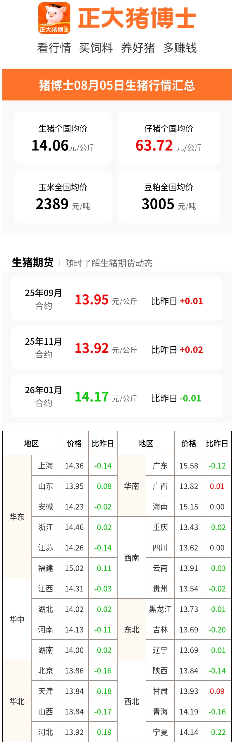 08月05日生猪行情汇总(元/公斤)