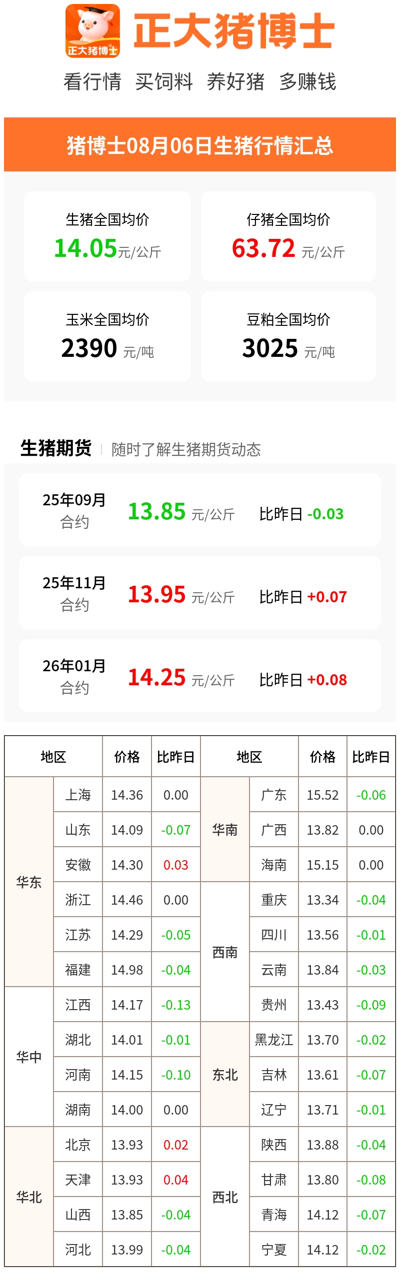 08月06日生猪行情汇总(元/公斤)