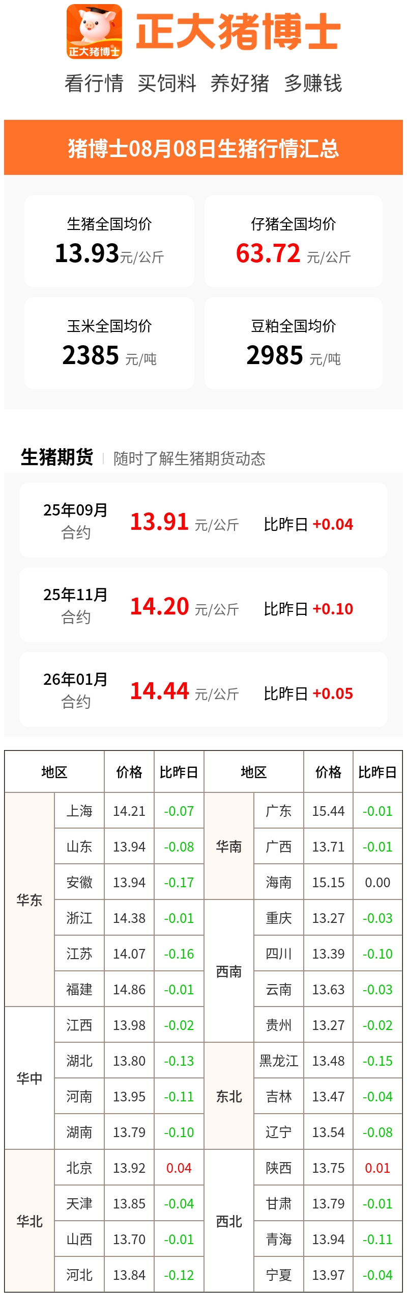 08月08日生猪行情汇总(元/公斤)