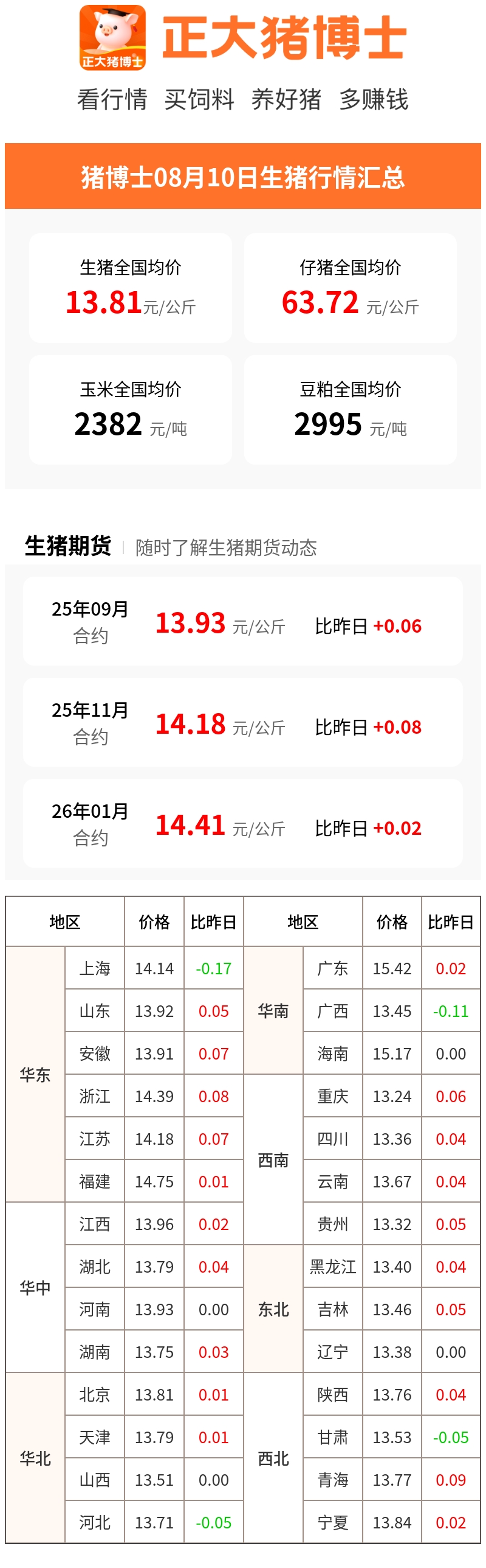 08月10日生猪行情汇总(元/公斤)