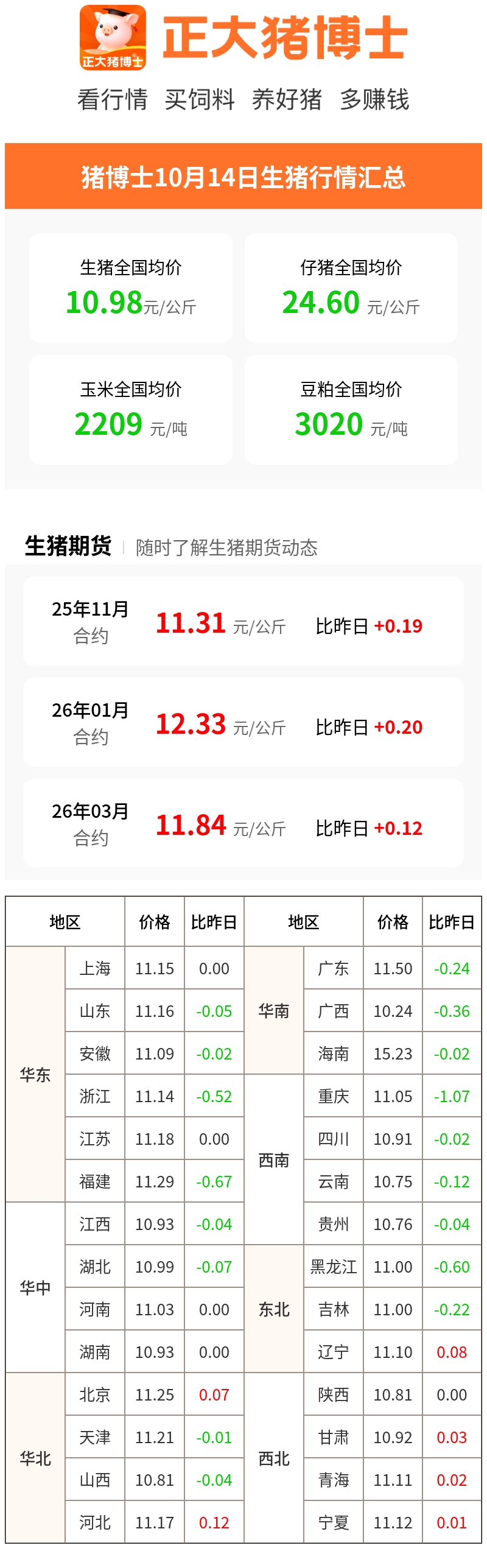 10月14日生猪行情汇总(元/公斤)
