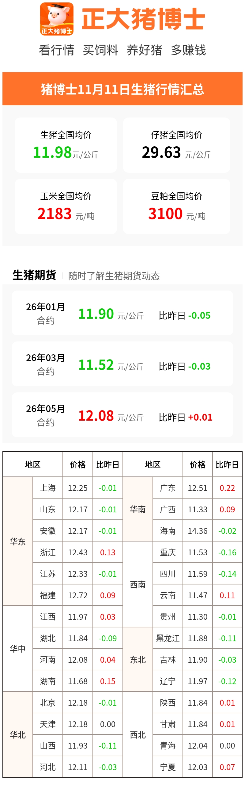 11月11日猪价|北方偏弱,南方稳中上涨!
