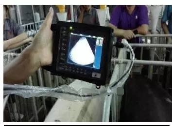 2、妊娠检测器检查(A型扫描仪检查),它会发射一束超声波进入母猪体内,根据回音可以判断出体内是否有适当大小的储液泡。如果储液泡处于适当的深度,扫描仪就会接收到一种光的或者声音的信号。它的优点是购买仪器成本低,监测所需时间短,轻便、易于携带;缺点是只能检测出70%的空怀猪,检测出的空怀猪中大约20%是怀孕的,对膀胱或者子宫内的其它液体起反应。