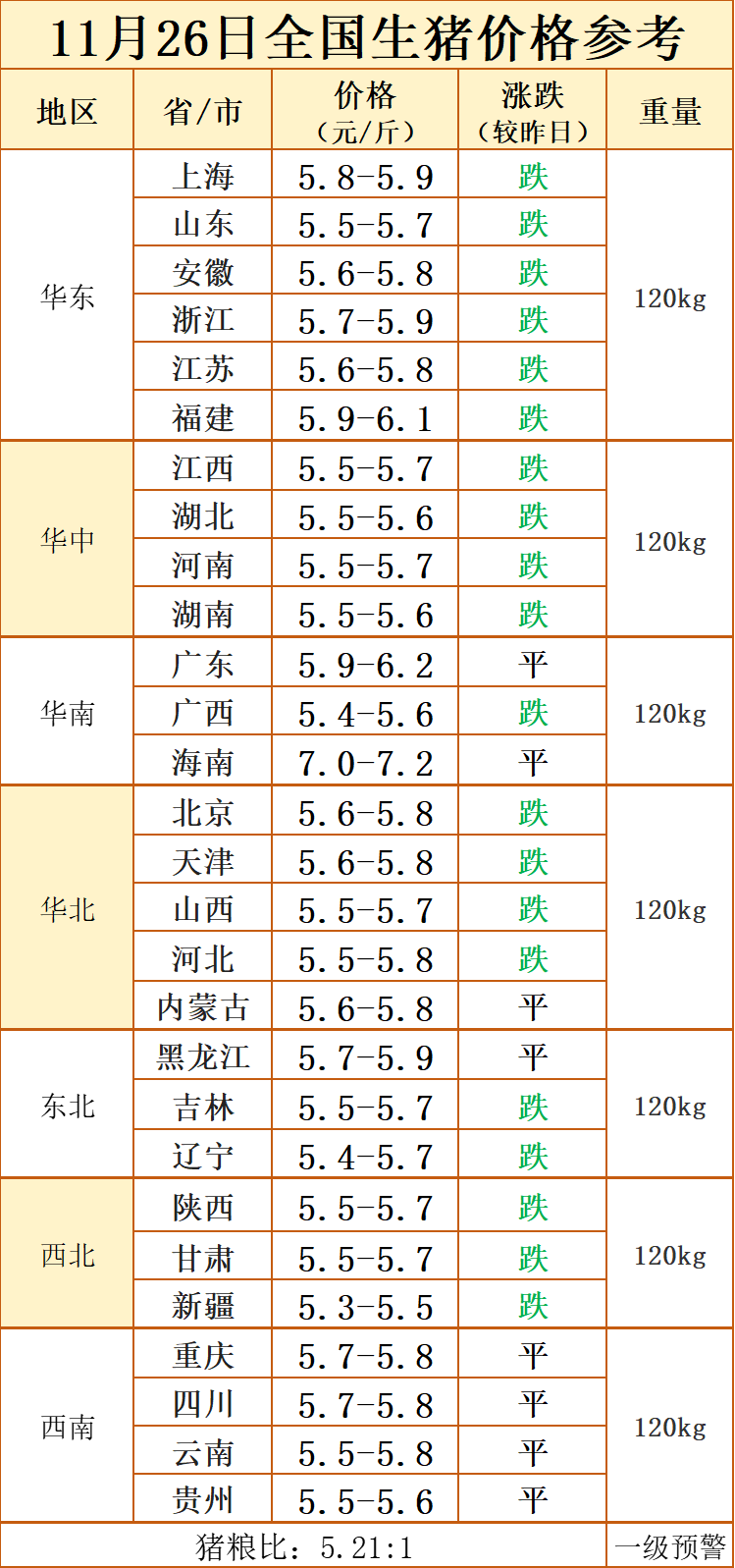 ????11月26日全国生猪价格参考: