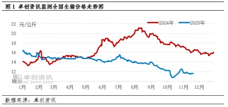 综上所述,2025年12月生猪市场将呈现“供需双增”的格局,但需求端的增量或难抵供应端的增量,猪价下跌预期较高。尽管腌腊旺季的阶段性需求可能为价格提供短期托底,但整体下行趋势难以改变。卓创资讯预测,12月全国生猪均价或在10.8-11.3元/公斤区间运行,较11月仍有下跌空间。对于养殖主体而言,当前应理性看待旺季行情,避免过度压栏,及时根据自身养殖成本和市场价格调整出栏进度,避免在市场情绪影响下集中出栏,导致价格踩踏。