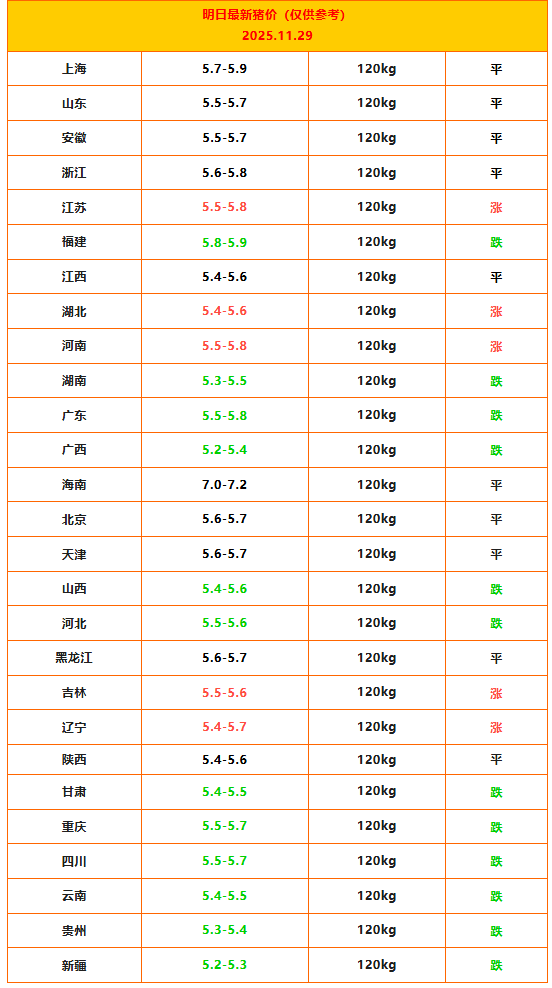 明日猪价 | 2025.11.29日~全国各地最新猪价(猪价已更新!)