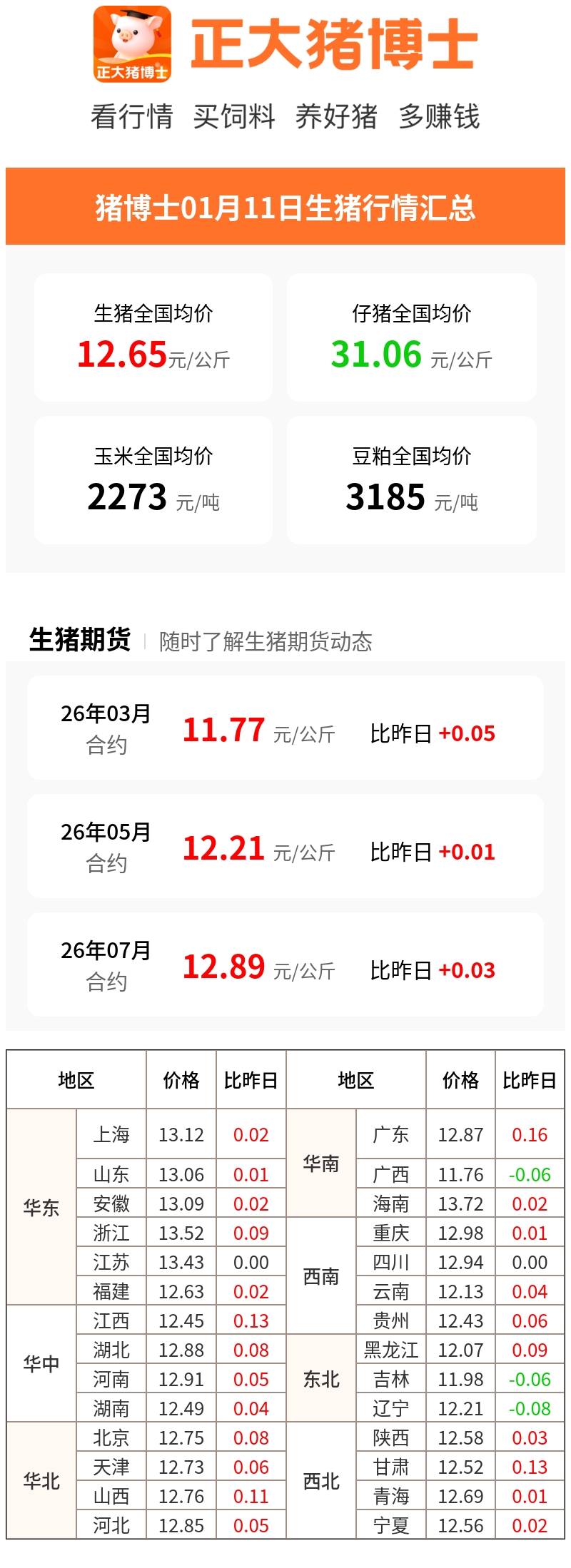 全国各地2026.1.11~明日最新猪价(猪价已更新!)