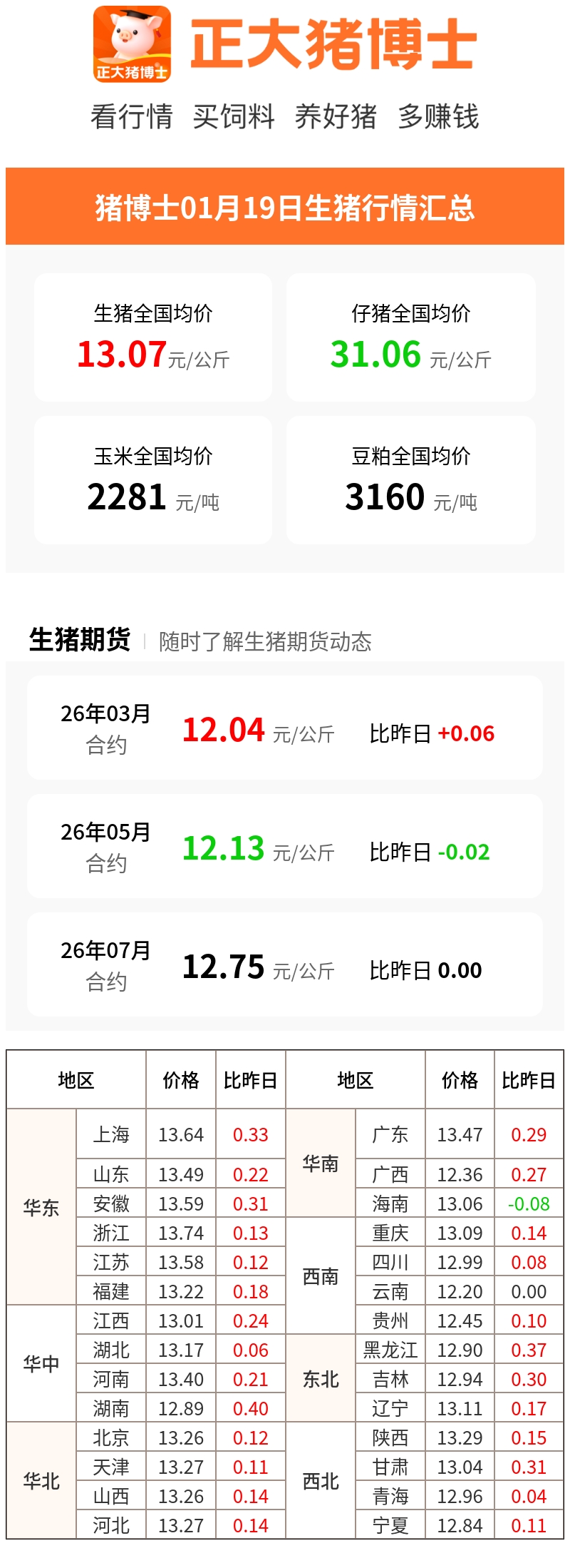 01月19日生猪行情汇总(元/公斤)