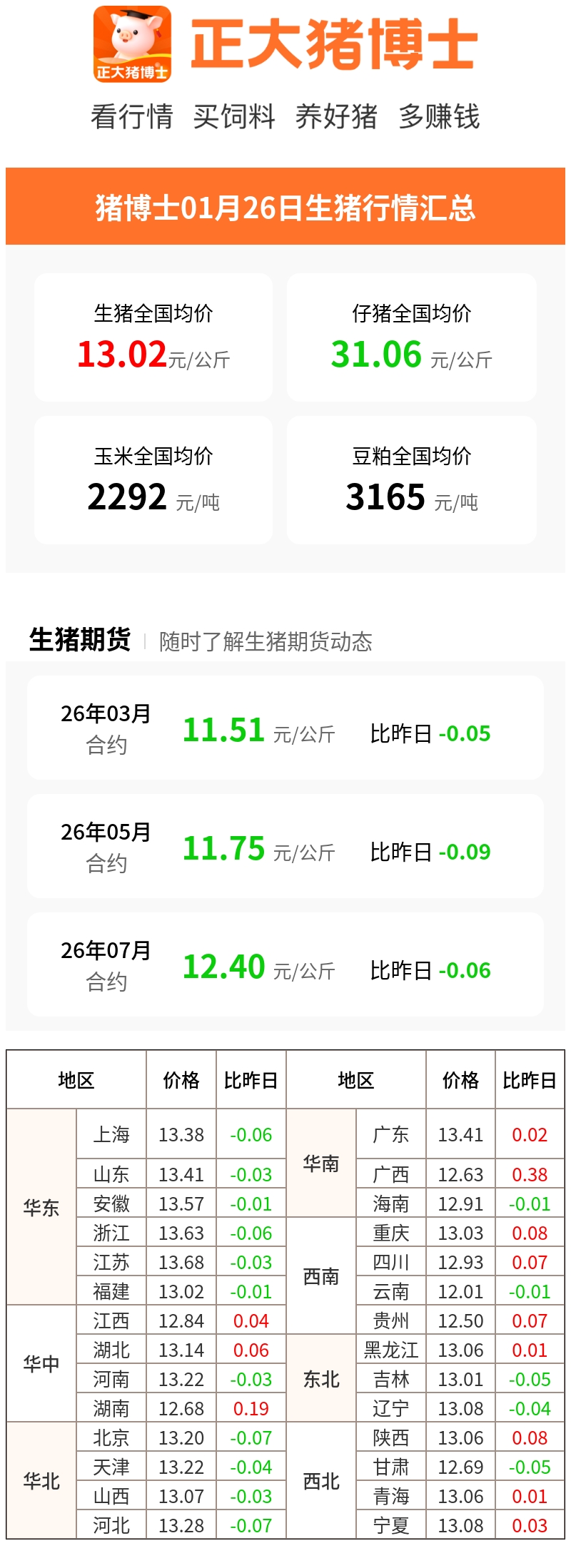 全国各地2026.1.26~明日最新猪价(猪价已更新!)