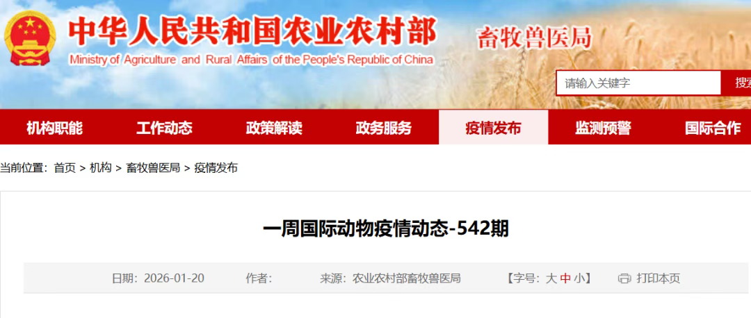 1月16日,塞尔维亚通报西巴奇卡州发生10起野猪和1起家猪非洲猪瘟疫情,17头野猪感染死亡,2头家猪感染被扑杀。