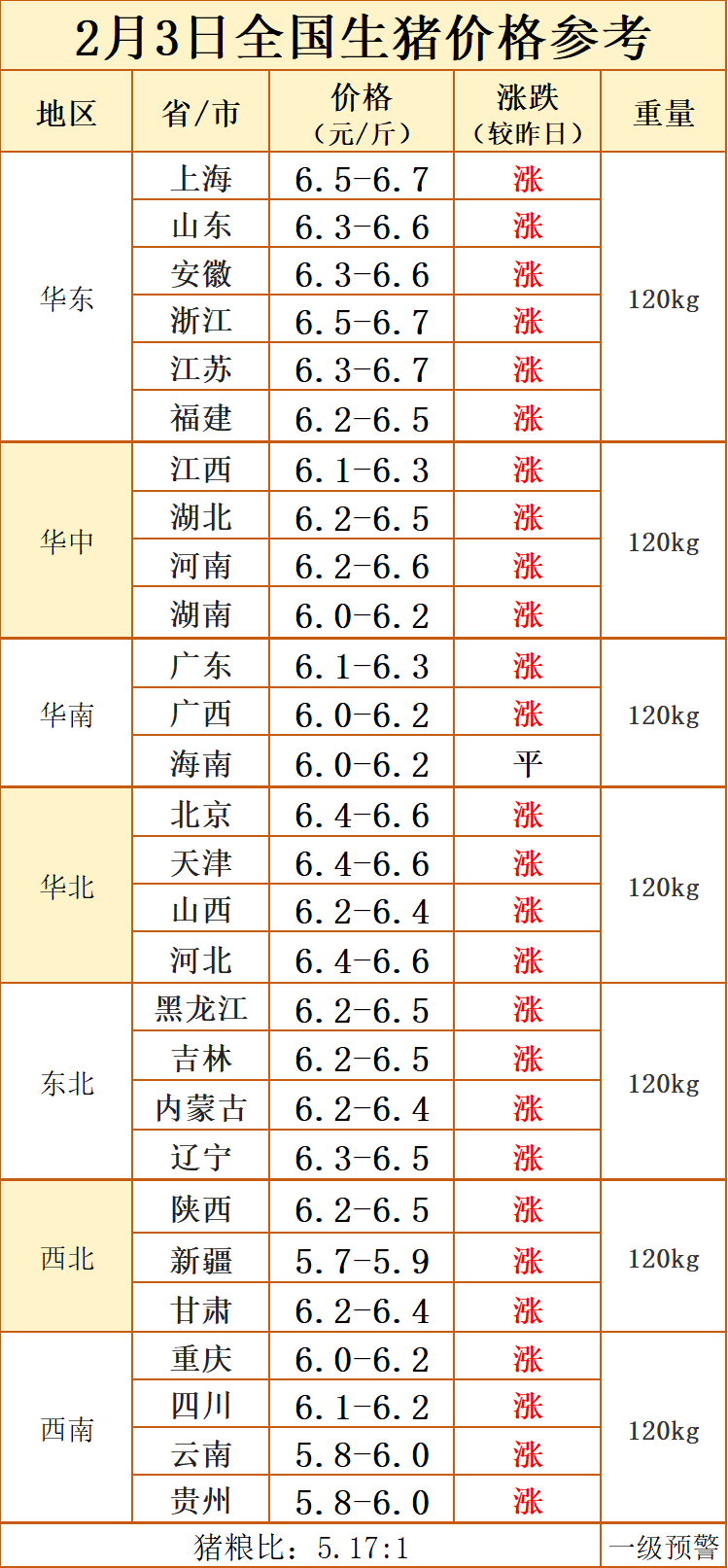 2月3日全国生猪价格参考:
