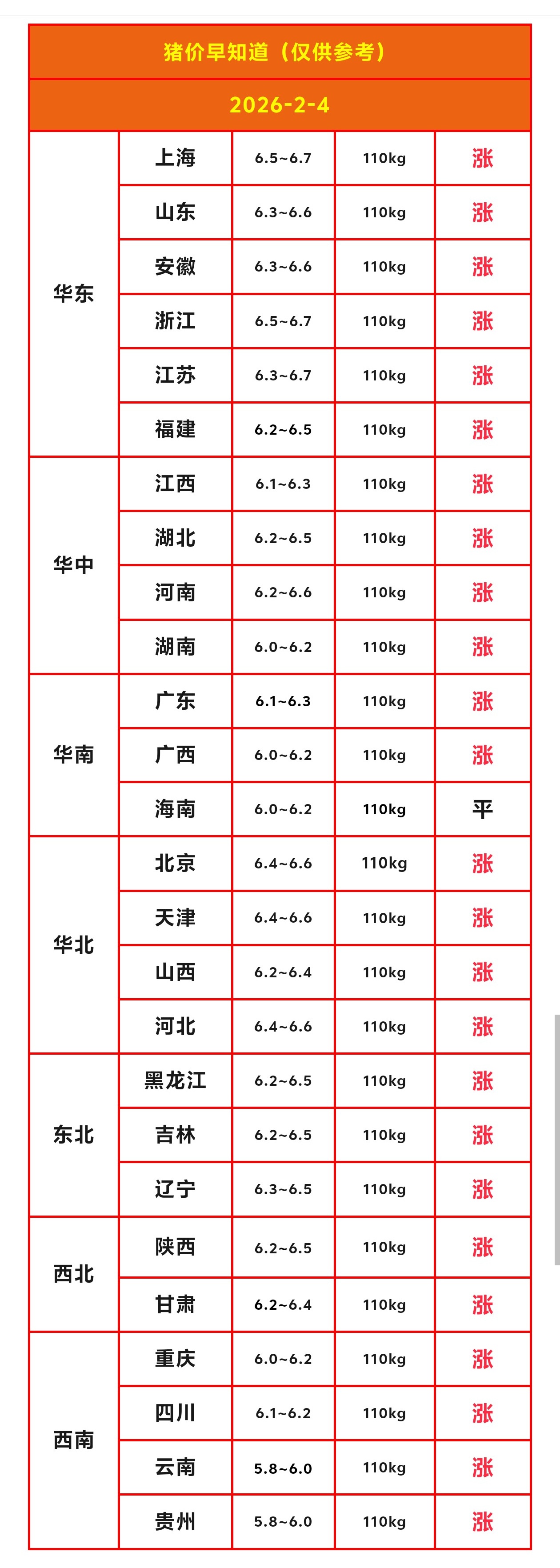 今日全国生猪(品种:外三元)均价为12.59元/公斤,猪价较昨日上涨0.20/公斤;生猪(品种:内三元)均价为13.10公斤,猪价较昨日上涨0.14/公斤;生猪(品种:土杂猪)均价为12.83/公斤,猪价较昨日上涨0.14元/公斤。