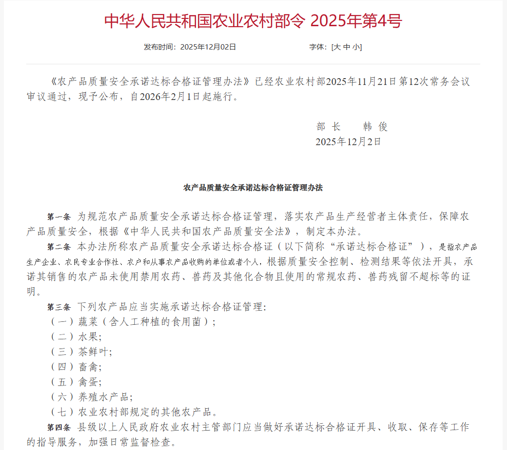 合格证制度的全面实施,恰逢行业迈向高质量发展的关键时期。它不仅是对农产品质量安全的保障,也是倒逼产业升级的重要举措。
