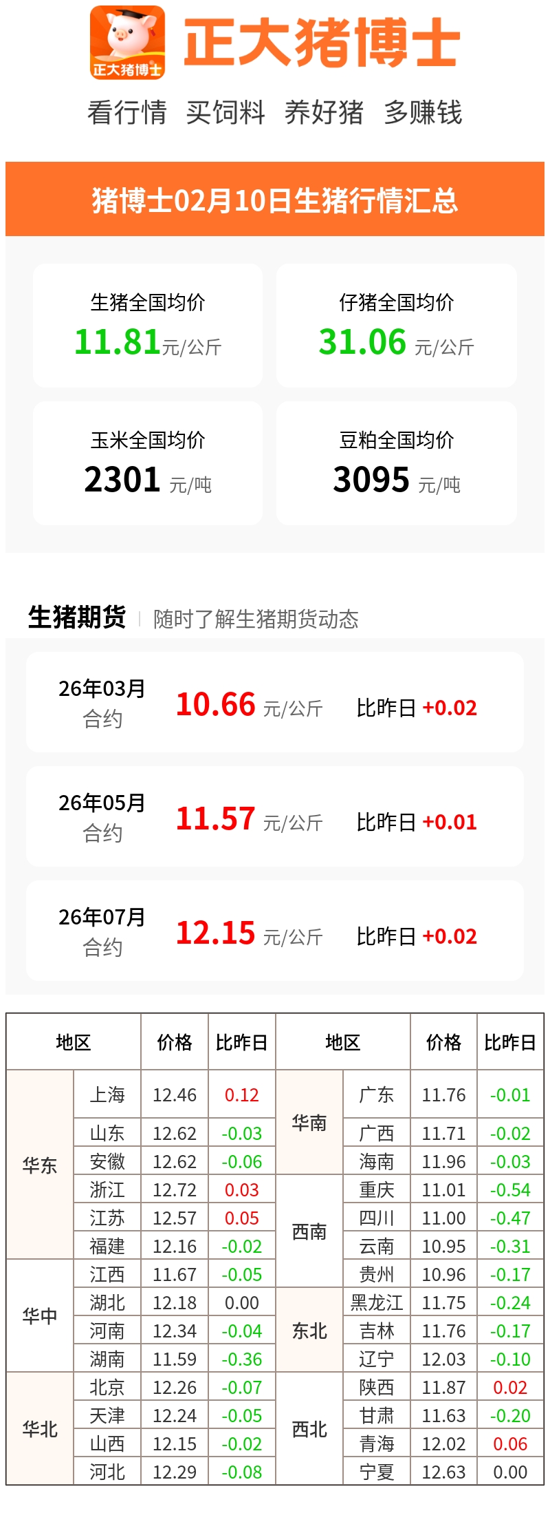 全国各地2026.2.10~明日最新猪价(猪价已更新!)