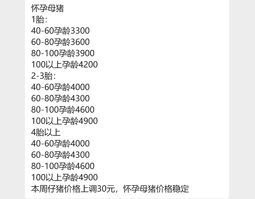 二、2-3胎100日龄妊娠母猪牌价4900元