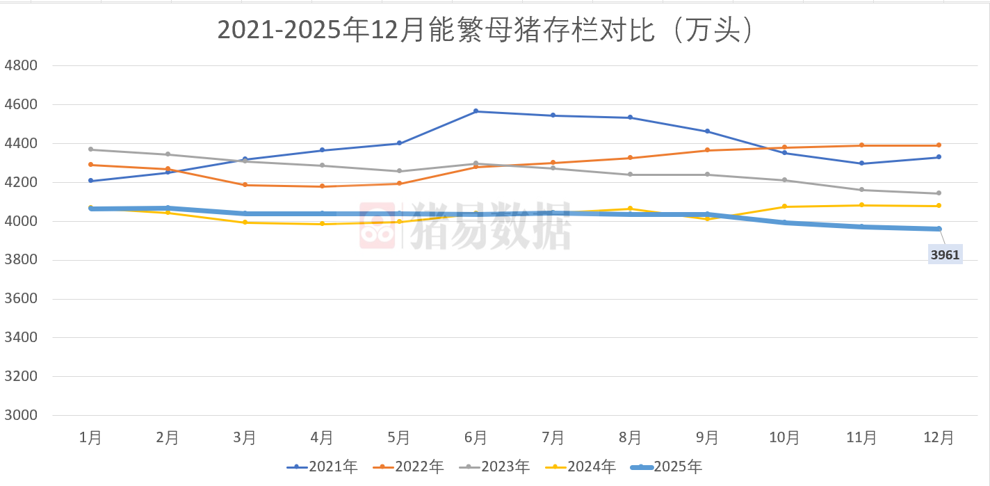 一、2025年12月末能繁母猪3961万头,创五年来新低