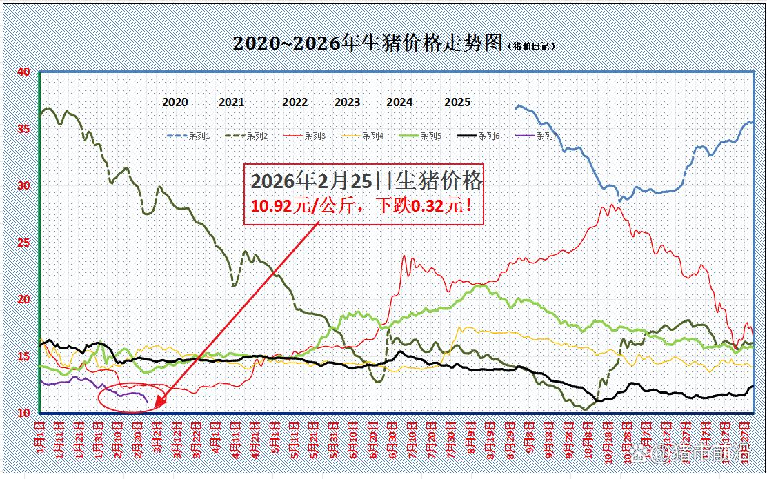 春节假期告一段落,在国内生猪市场,众所周知,春节前,猪价呈现“超预期”下跌的走势,传统消费旺季,小年前下游屠宰场集中备货,消费需求大幅回升,但是,碍于春节前养殖主体避险情绪偏强,多方主体减重增量,适重中小标猪以及中大猪扎堆出栏,南北地区,屠宰场采购顺利,部分屠宰场有圈存现象,猪价承压下跌,外三元标猪出栏报价触及2026年以来新低,生猪均价降至11.5元/公斤左右!