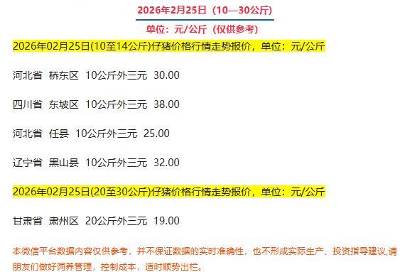 仔猪价格 | 2026.2.25日~全国最新仔猪价格