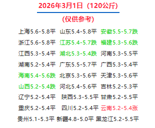 明日猪价 | 2026.3.1日~全国各地最新猪价(猪价已更新!)
