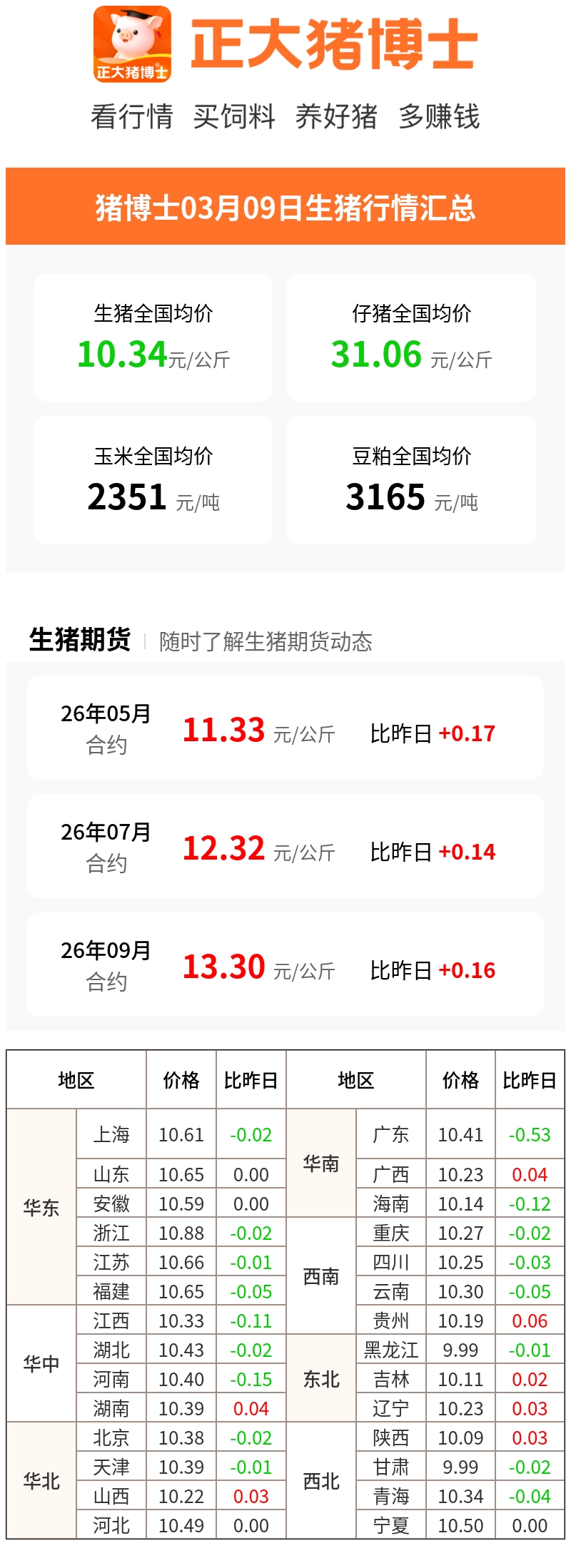 3.10 明日猪价早知道 全国最新猪价信息