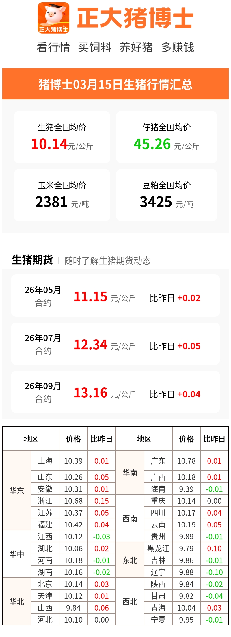 全国各地2026.3.15~明日最新猪价(猪价已更新!)