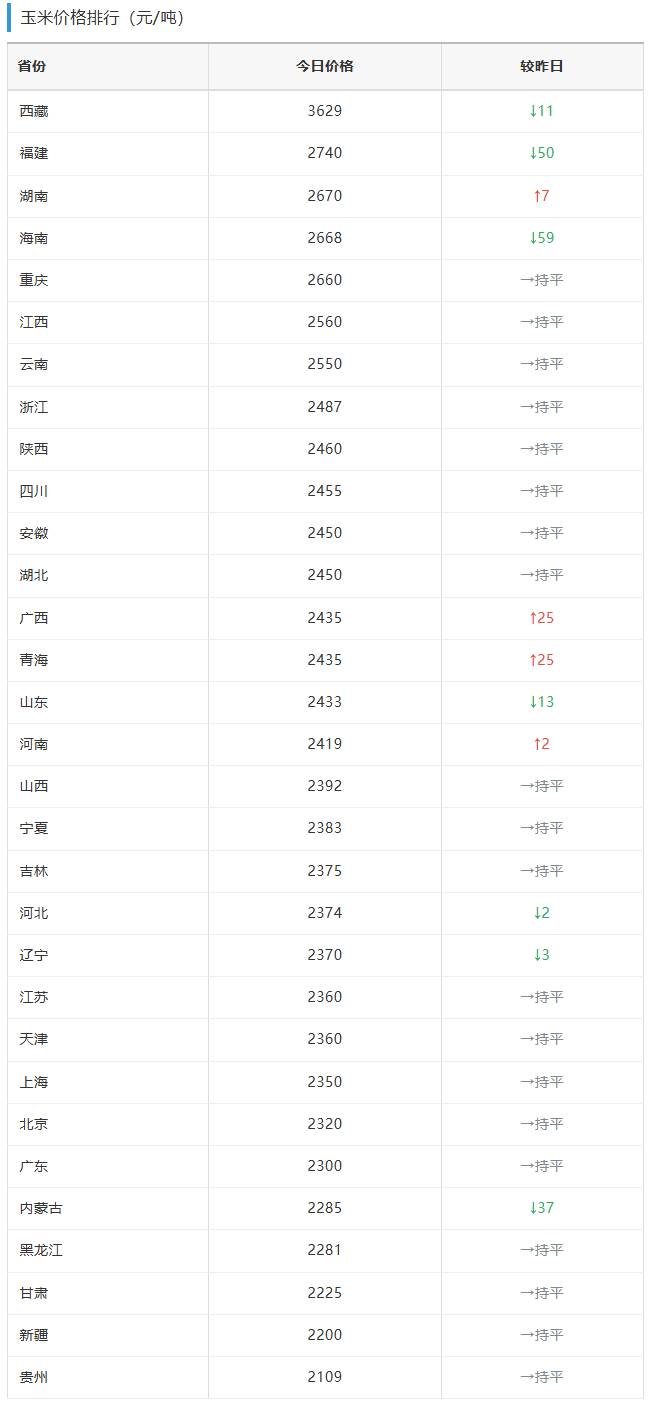 玉米:2415 元/吨 ↓2元