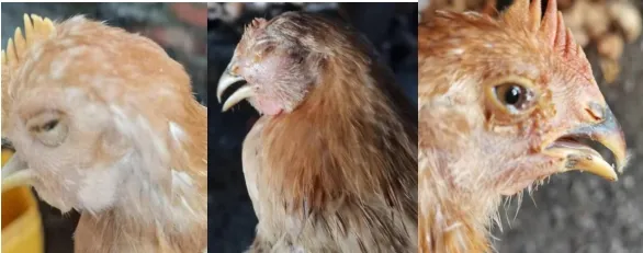 2.病鸡头部肿胀、颜色发红;
