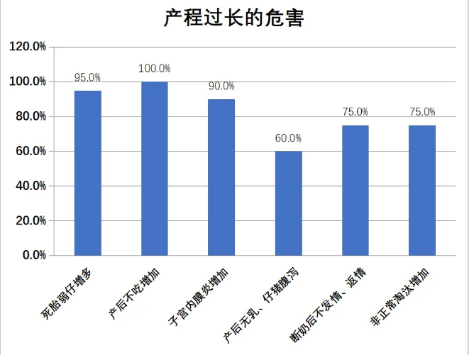 母猪产程过长导致了以上一系列的繁殖障碍性问题的出现,其核心环节是母猪产仔时由于消耗净所有的体能,导致产后极其虚弱疲劳,继而出现不吃料、子宫炎,影响了奶水质量,导致仔猪腹泻、母猪断奶时掉膘严重,最终出现断奶不发情、返情,迫不得已而淘汰。