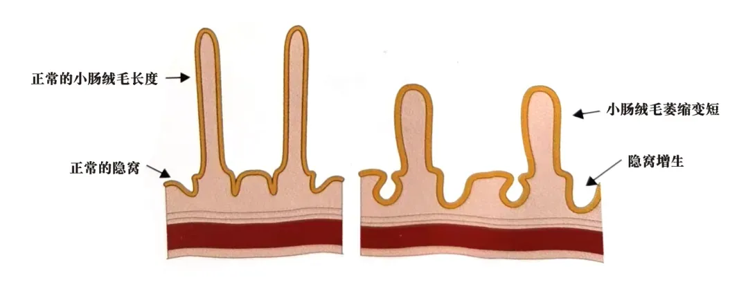 断奶仔猪的小肠绒毛长度、隐窝深度和绒毛面积仍然处在生长发育阶段,仔猪断奶后,食物由母乳变成固体的饲料,缺少了乳酸来源,而仔猪断奶后由于消化功能不完善,胃酸的分泌能力很弱,胃内pH值升高,抑制消化酶的活性,肠道菌群平衡被打破,造成病原菌繁殖加快,会造成小肠绒毛磨损、剧烈萎缩、隐窝增生,肠黏膜吸收面积大大降低,严重影响对营养物质的吸收,从而导致腹泻等问题。