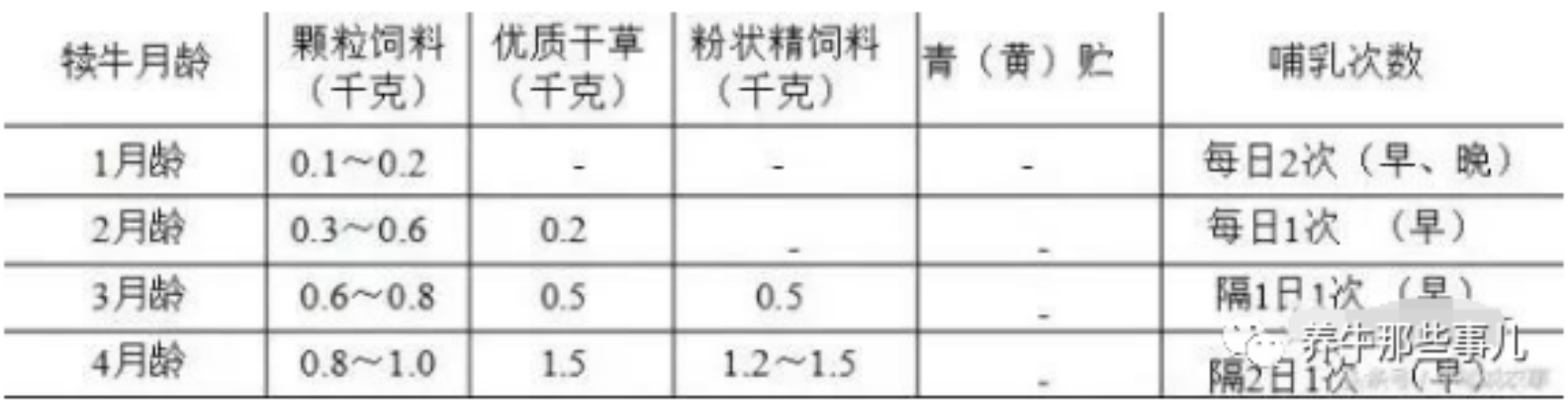 肉用犊牛4月龄断奶饲养方案: