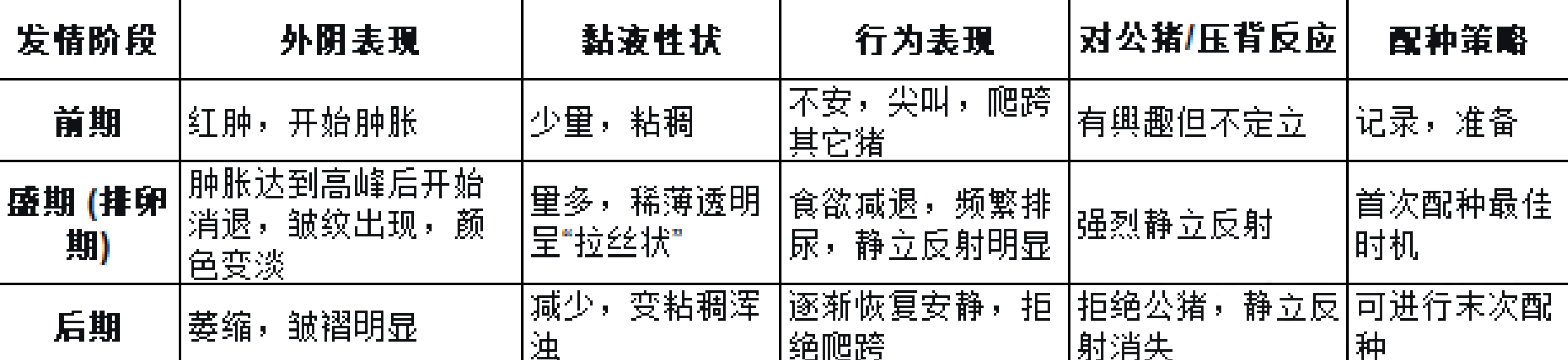 WEI短的母猪(3-4天):发情持续时间长,可稍晚配(静立后12小时首配)。