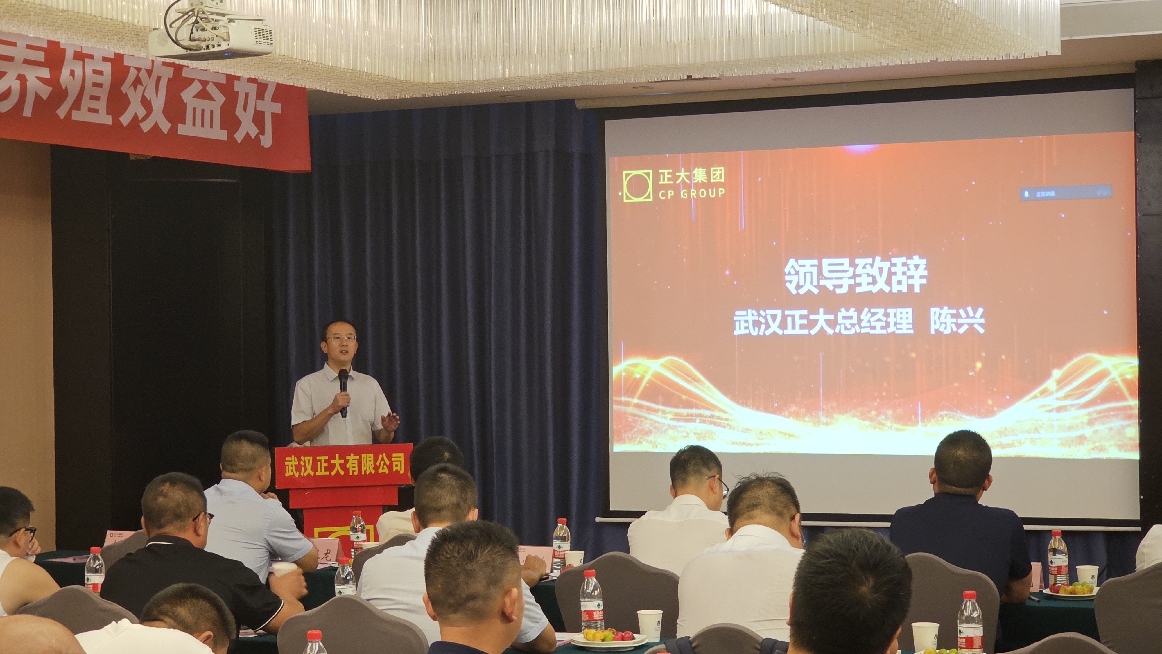 会议初始武汉正大有限公司总经理陈兴先生对嘉宾的到来表示衷心感谢和热烈欢迎;并深入剖析了当前养殖行业面临的挑战与机遇。他指出,在市场波动和疫病风险的双重压力下,养猪业必须修炼内功、资源整合才能赢得未来。正大集团“猪九保”服务体系,致力于从猪场生产管理、品种改良、健康防控到生猪销售全链条为客户提供解决方案,切实帮助客户提升生产指标与经营效益,真正成为您的养殖顾问。
