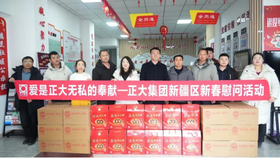 为积极弘扬集团“爱是正大无私的奉献”主旋律,切实履行企业社会责任、彰显使命担当,在新春佳节来临之际,正大集团新疆区慰问小组在董银河副董事长的统筹安排下,于1月26日-28日先后前往乌鲁木齐市儿童福利院(市第120中学)、乌鲁木齐市养老福利院、乌鲁木齐市五一农场下辖社区,为特殊群体及一线社区工作者送去了“安全、优质、新鲜”的正大食品,以实际行动践行公益初心,用点滴善举传递企业温暖。