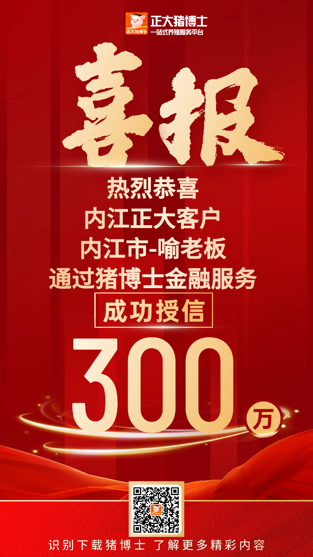 热烈祝贺内江市喻老板融资授信300万〡内江正大
